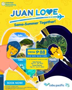 Tara, everyJuan! Sama-Summer together with Cebu Pacific! The country’s leading airline, Cebu Pacific (PSE: CEB), is once again inviting everyJuan to show one love for