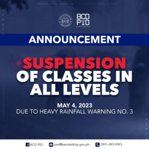 In light of the recent weather warning, the city government of Bacolod along with other local government units in Negros Occidental had announced the suspension