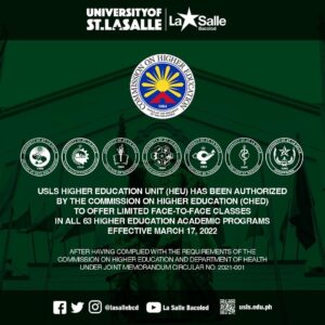 The Commission on Higher Education – Regional Office VI has approved the application of University of St. La Salle to resume face-to-face classes in tertiary education.